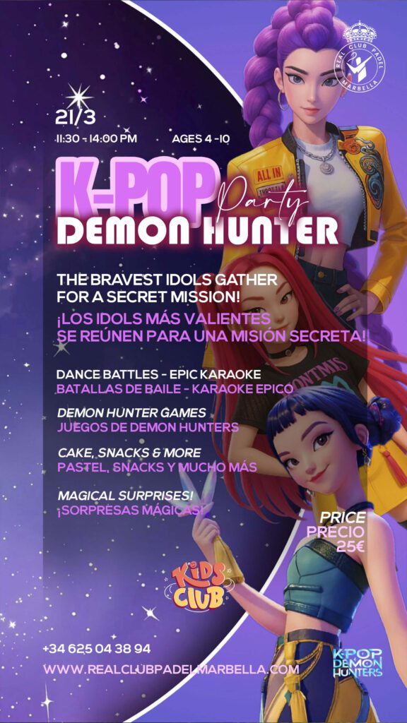 ¡Los idols más valientes se reúnen para una misión secreta! Prepárate para una fiesta llena de ritmo, energía y diversión inspirada en el universo K-Pop Demon Hunters. Una experiencia única donde la música, el baile y la aventura se combinan para que los peques vivan su propia historia como auténticos idols cazadores de demonios.